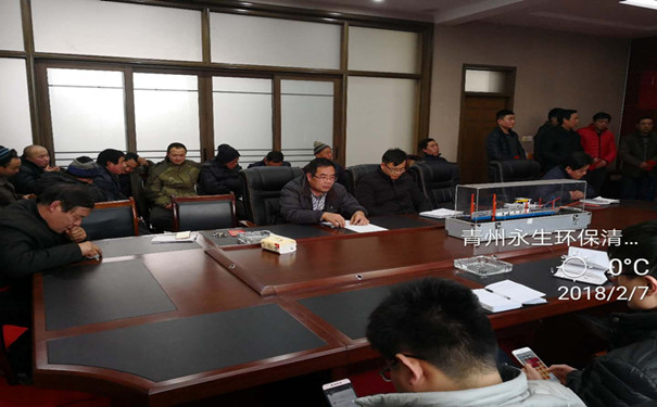 2018年2月7日下午,青州永生環(huán)保清淤裝備有限公司召開2017年終總結(jié)大會(huì)暨年終表彰大會(huì),董事長王永生及全體員工參加。